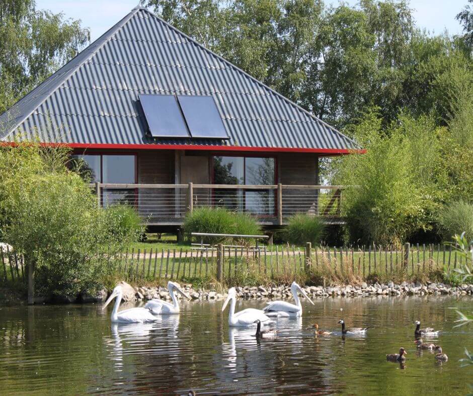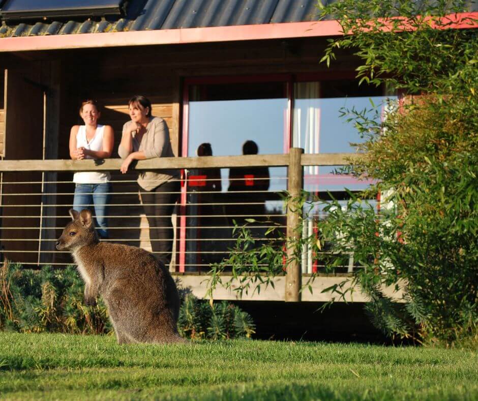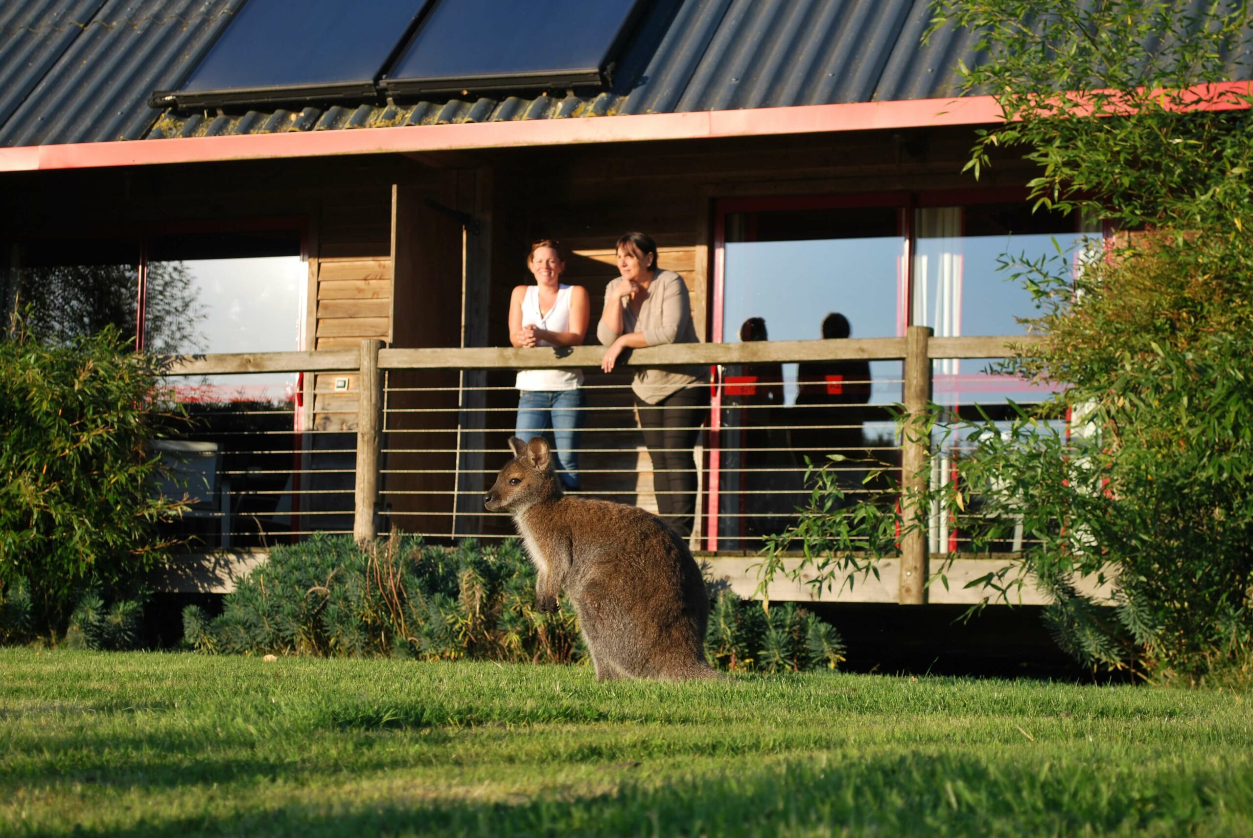 - Une terrasse sur pilotis avec vue sur les animaux.